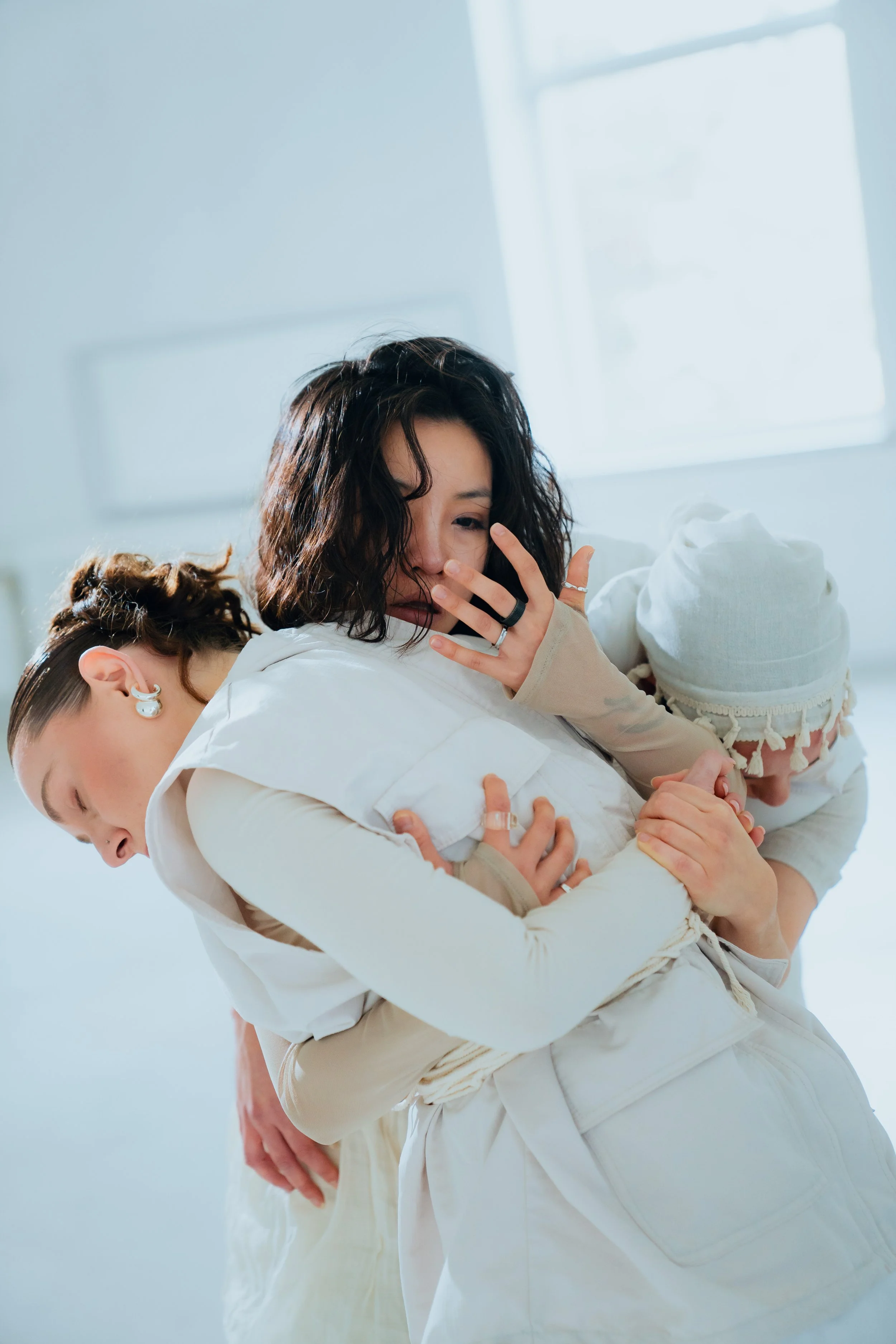 AKIN examines the tension between collective synchronicity and the hidden inner reality of the individual. One protagonist describes her overwhelming feelings, while three other figures appear as aesthetic mirrors of her inner states. In a world that demands perfection and smooth functioning, everyday life continues like a mechanical system even when the inside has long overflowed. The bodies increasingly come under pressure until the structure discharges in synchronous, yet faulty movements. The encounter with an antagonist opens a moment of silent perception and raises the question of whose emotions are actually at work in the space. AKIN reveals a raw, deeply human choreography between adaptation and authentic expression.